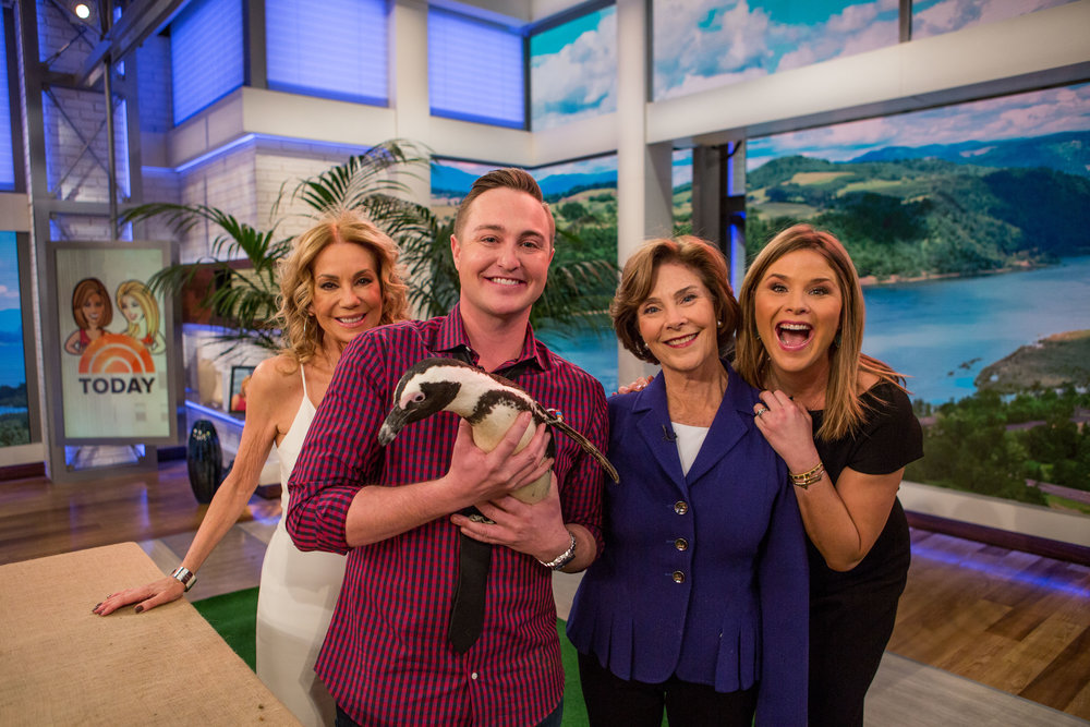 One thing I will say about KLG, is that she is down for just about anything! Out of all the Today Show talent I’ve worked with throughout the years, she has seemed the most comfortable with the animals. Here, everyone is touching Aurora, the African Penguin.